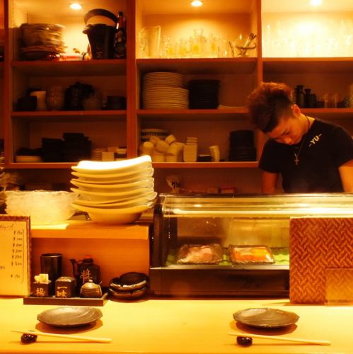 【デートも◎のカウンター席】割烹料理店を彷彿させる上品な空間の中にも、ワイワイ活気あふれた店内!スタッフも最高のサービスでおもてなしする準備が出来てございます♪楽しく贅沢な時間をお過ごしください!