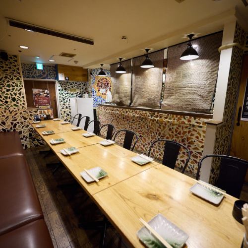 【完全個室あります!】2Fの離れに完全個室をご用意!(最大16名様まで着席可)また、1F奥のお座敷個室は~14名様でご利用頂けます!カーテン個室は4名様~6名様までOK!幹事様がお得になるクーポン(※10名様以上でご利用時)もご用意しておりますので、宴会利用に是非!